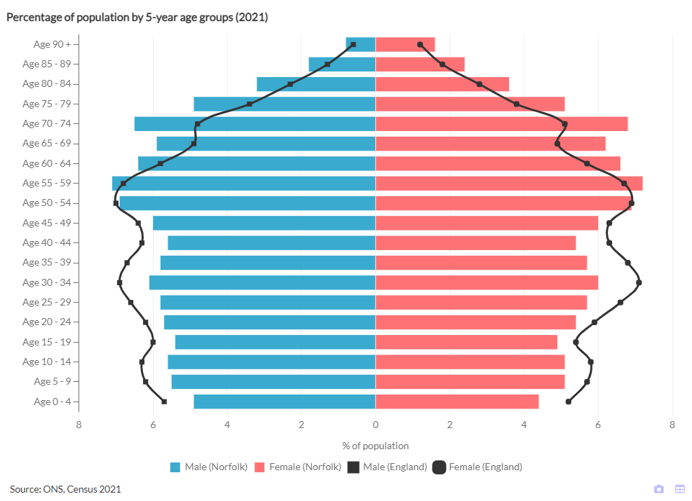 We are introducing a new Standard layout for pyramid charts where the main difference is that the age group labels now appear on an axis to the left of the bars. This solved some issues with the previous layout to do with axis scaling and legend display. The previous layout is still available as Classic and any existing charts will keep the classic layout until the report owner decides to change it. Any newly added pyramid charts are using the new standard layout by default.