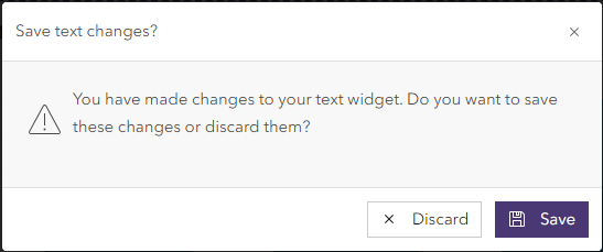 In the past users may have lost changes to text widgets by unintentionally clicking outside the text editor frame. We have now added a dialog that will ask if you wish to save your changes when clicking outside the editor.